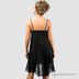 Стильное платье на тонких регулируемых бретелях и асимметричным низом. Лиф платья выполнен из атласного материала. Застежка-молния на спинке изделия.
