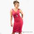 Стильное трикотажное платье без рукавов с V-образным вырезом горловины. Спереди оригинальная аппликация, от которой идут сборки, подчеркивающие талию. Спинка имеет глубокий вырез.