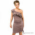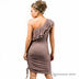 Стильное асимметричное трикотажное платье, декорированное двойным слоем рюш по вырезу горловины. Сбоку платье присборено на кулиску. Одежда Extasy - это шедевр, воплощающий основные направления и тенденции современной моды.