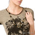 Стильное трикотажное платье-футляр с корткими рукавами-реглан и круглым вырезом горловины. Края рукавов и воротник украшены кружевной ленточкой. Спереди платье декорировано оригинальным принтом.