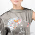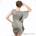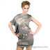 Стильное асимметричное платье с круглым вырезом горловины. Один рукав декорирован воланами. Спереди оригинальный принт.