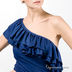 Стильное асимметричное трикотажное платье, декорированное двойным слоем рюш по вырезу горловины. Сбоку платье присборено на кулиску.