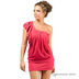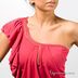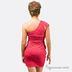 Стильное асимметричное платье из эластичного трикотажа. Один рукав украшают мягкие воланы, от груди, украшенной цепочкой, идут складки.