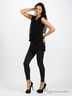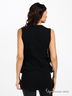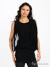 Трикотажное платье черного цвета, спортивное и элегантное. Прекрасно подойдет активным современным женщинам. Круглая горловина. Без рукавов. Полочка декорирована воздушными шифоновыми вставками.