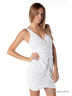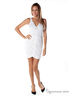 Коктейльное платье на широких бретелях, с глубоким V-образным вырезом зоны декольте и спины. Платье декорировано драпировкой и брошью с логотипом бренда.