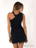 Короткое платье оригинального кроя с круглым вырезом, декорированным питоновой вставкой, бусинами, выполненными в разной геометрии.