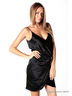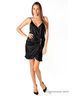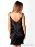 Короткое коктейльное платье на тонких бретелях, с V-образной открытой зоной спины и декольте, декорировано драпировкой и металлической брошью в виде отрезка цепи на карабине.