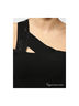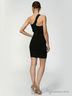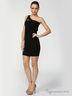 Бандажное платье на одном плече, открытая зона декольте, декорирована черными стразами по линии декольте.