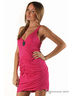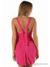 Коктейльное платье на широких бретелях, с глубоким V-образным вырезом зоны декольте и спины. Платье декорировано драпировкой и брошью с логотипом бренда.