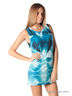 Короткое платье- туника без рукавов декорировано ярким контрастным принтом "акварель". Отличный вариант для создания стильного образа.