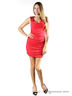 Короткое коктейльное платье без рукавов, с открытой зоной спины и декольте, декорировано драпировкой по бокам, стразами и металлическими заклепками на бретелях.