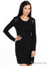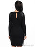 Короткое трикотажное платье с длинными рукавами с круглым вырезом, украшенное кожаными вставками на плечах.