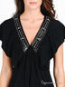 Детали: V-образный вырез; застегивается на молнию сбоку; окантовка выреза из кожи со стразами