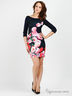 Элегантное платье приталенного силуэта. Выполнено из гладкого материала с шелковистой подкладкой. Округлый вырез горловины. Укороченные рукава 7/8. Сзади застежка на молнию. Яркий цветочный узор. Снизу шлица. Отличный вариант на каждый день!
