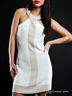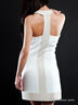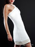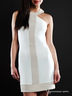 Детали: классическое платье с дизайнерским воротником, круглый вырез горловины в виде одной широкой бретели, подол широкая полоска