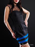 Детали: платье стрейч с гипюрной вставкой, юбка мини, отделка оригинальными полочками