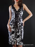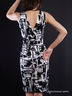 Детали: платье с V-образным вырезом на груди и по спинке, декорирован рюшами в области груди, юбка - карандаш, шлиц по низу юбки.