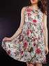 Детали: дизайнерское мини платье в складочку, цветочный принт, круглый вырез горловины, юбка полусолнце с плиссировкой