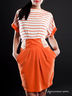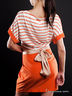 Детали: дизайнерское платье с тканевым пояском, короткие рукава, два прорезных кармашка, отрезное по линии талии, круглый вырез горловины