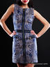 Детали: платье в классическом стиле с золотым принтом, дизайнерские молнии, круглый вырез горловины, короткие рукава, два прорезных кармашка на молнии, застежка с лицевой стороны на молнии