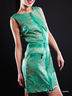 Детали: платье в классическом стиле с золотым принтом, дизайнерские молнии, круглый вырез горловины, короткие рукава, два прорезных кармашка на молнии, застежка с лицевой стороны на молнии