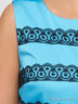 Платье с короткими рукавами и округлым вырезом горловины. Модель приталенного кроя подчеркивает достоинства фигуры. Лиф декорирован вышивкой.