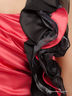 Изысканное платье приталенного силуэта - это красивый вечерний или коктейльный вариант для истинной леди. Модель на бретелях, украшена рюшами контрастного цвета. Платье идеально сядет по фигуре, подчеркивая ее достоинства.