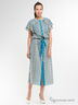 Стильное платье-макси на жаркую летнюю погоду. Модель с короткими рукавами и отложным воротником. Изделие оформлено центральной застежкой на пуговицы. Пояс на талии.