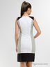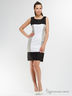Великолепное платье с округлым вырезом горловины на широких бретелях. Приталенный крой, средняя длина. Изделие декорировано контрастными вставками.