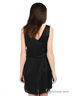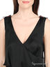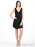 Детали: глубокий V-образный вырез с запахом с лицевой стороны и по спинке, без рукавов, платье отрезное по линии талии, небольшие погоны в качестве отделки, два прорезных кармашка.