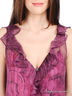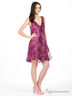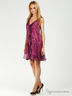 Детали: глубокий V-образный вырез горловины, без рукавов, изделие отделано воланом, внешняя часть выполнена полупрозрачной тканью, платье украшено оригинальным принтом.