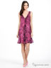 Детали: глубокий V-образный вырез горловины, без рукавов, изделие отделано воланом, внешняя часть выполнена полупрозрачной тканью, платье украшено оригинальным принтом.