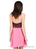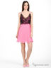 Детали: платье на тонких лямках, отделано по краям кружевной ткань, с внешней стороны отделано гипюром, отрезное по линии талии, классическая юбка длиной чуть выше колен.