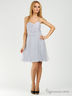 Детали: платье на тонких бретелях, отрезное по линии талии, классическая юбка длиной чуть выше колена, лиф украшен присбореной тканью.
