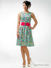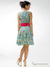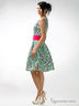 Стильное платье без рукавов с округлым вырезом горловины. Силуэт расклешенный к низу. Модель выполнена из цветной ткани. Прекрасный вариант для создания яркого образа.