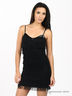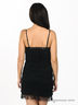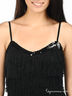 Детали: тонкие бретели, регулирующиеся по длине; застегивается на молнию сзади; декорировано многорядной бахромой и пайетками