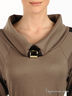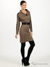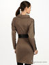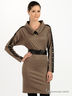 Детали: воротник хомут с оригинальной вставкой и золотистой фурнитурой, длинные рукава с вставками под кожу и золотистыми пуговицами, талия подчеркнута поясом под кожу