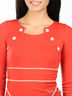 Детали: втачной пояс; рукав 3/4; фигурный вырез; имитация карманов; декорировано оригинальными вставками и пуговицами; сзади небольшой разрез