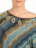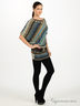 Детали: круглый вырез, оригинальные рукава, талия на широком поясе-резинке, украшено декоративными элементами под дерево