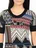 Детали: короткий рукав; круглый вырез; декорировано оригинальным принтом и бантиком на цепочке; в комплекте съемные рукава в рубчик с бантиком