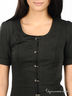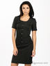 Детали: круглый вырез; короткий рукав; застегивается сбоку на молнию; спереди встречная складка с декоративными заклепками; сзади шлица