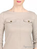 Платье А-силуэта привлекает внимание своим, на первый взгляд, простым кроем, созданным за счет продольной прострочки. Конструктивные линии подчеркиваются отделочными строчками в тон ткани. Украшают изделие декоративные клапаны.