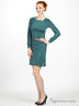 Принт мелкого горошка очень современно выглядит на нежной трикотажной ткани, изумрудно-бирюзового оттенка. Крой рукава-реглан подчеркнут мягкими защипами. В комплекте элегантный пояс.