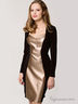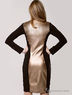 Модное платье-карандаш из прекрасного материала. Фигурный вырез горловины. Длинные облегающие рукава. Полочка и спинка дополнены вставкой из контрастной ткани с эффектным покрытием. Прекрасный вариант для создания праздничного образа!