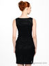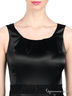 Платье-футляр с округлым вырезом горловины и застежкой на молнию сзади. Оригинальное сочетание гладкой ткани спереди и со спинкой, дублированной в тон изделия гипюром. По линии горловины драпировано складками.