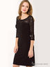 Потрясающее платье из прекрасных, разных по фактуре тканей. Широкий округлый вырез горловины. Вставки на полочке и спинке и рукава выполнены из фактурной, ажурной ткани, а лиф и неотрезная юбка - из гладкой, матовой. Такое платье удачно подчеркнет достоинства Вашей фигуры. Будьте всегда стильной!