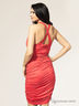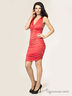 Обворожительное платье приталенного силуэта. Выполнено из приятного на ощупь материала. V-образный вырез горловины. Отрезной лиф на широких бретельках, которые переплетаются сзади крест на крест. По бокам модель оригинально присборена на резинку. Прекрасный вечерний вариант!