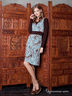 Трикотажное платье с ярким оригинальным принтом из приятного на ощупь материала. Круглая горловина. Запах на груди прекрасно подчеркивает формы. Длинные рукава поддерживают цвет втачного пояса.