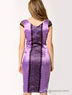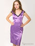 Классическое атласное платье прекрасно очерчивает фигуру. Насыщенный сиреневый цвет с элегантным лоском создают свежий, молодой образ. Круглая горловина. Платье декорировано черным ажурным кружевом, привнося нотку хрупкости и изысканности.