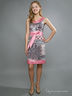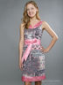 Платье прямого кроя из тонкого хлопка с набивным рисунком. Платье дополняют розовая кокетка и пояс.